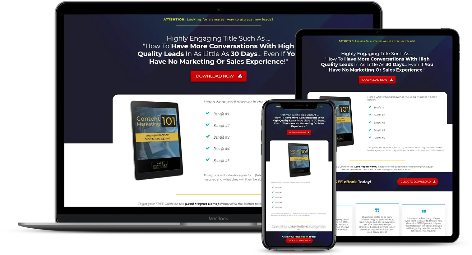 Perfect for attracting a high-volume of new leads plus converting those leads into a booked call about how you can help them solve their problems and achieve their biggest desires!